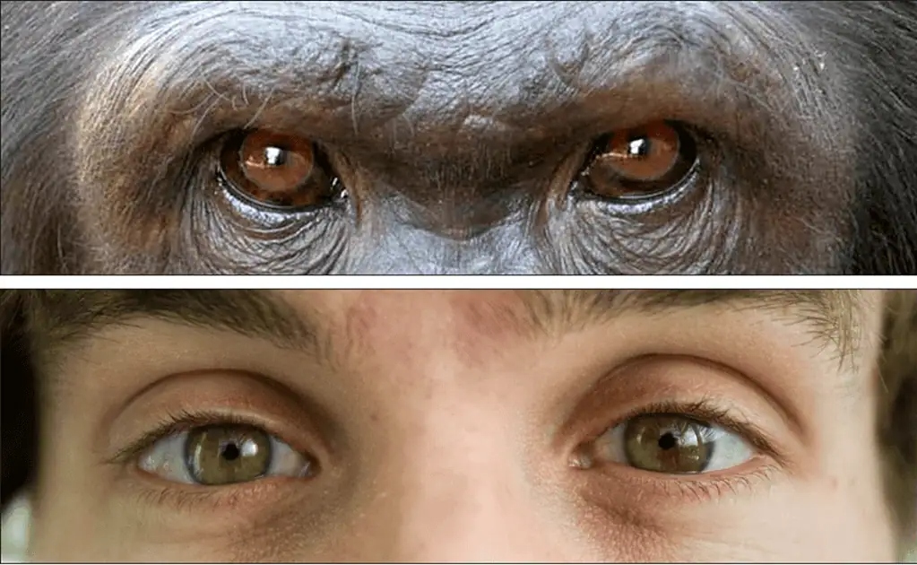 Con người có củng mạc trắng giúp dễ nhận biết hướng nhìn, khác với vượn lớn